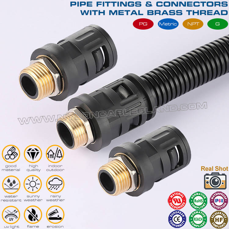 나일론 6 스트레이트 커넥터(파이프 조인트) 검정 RAL9005, 골판지 튜브 AD7~AD108용 금속 수나사산 PG7~PG48은 전기, 액체 및 가스 공급 시스템에서 널리 사용되는 일종의 연결 장치입니다. 밀봉 성능이 뛰어나고 특히 골판지 파이프를 연결하는 데 사용됩니다. 고온, 고압 및 부식성 액체 또는 가스를 운반하는 동안 안전하고 신뢰할 수 있는 연결을 유지할 수 있습니다.