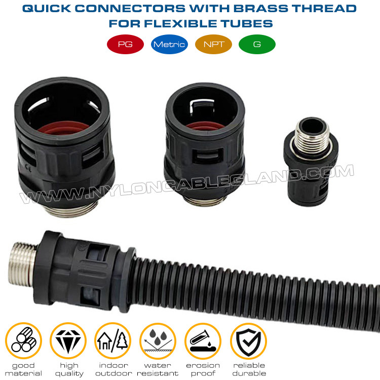 | 제품 이름: | 나일론 6 퀵 커넥터(조인트, 피팅) 검정 RAL9005 금속 나사산 PG7~PG48 골판지튜브 AD7~AD108용 |
