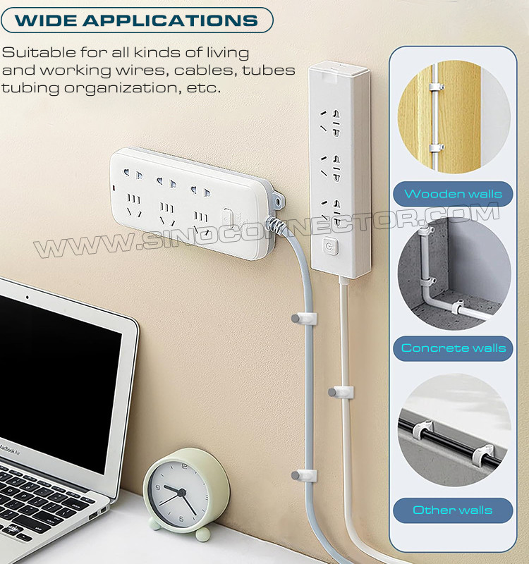 케이블 코드 클립은 가정과 사무실에서 전선, 케이블을 관리하는 데 이상적입니다. 지저분한 케이블로 인한 사고를 예방하고, 어린이와 애완동물을 보호하는 동시에 더 깔끔하고 안전한 생활 공간을 만드는 데 도움이 됩니다.