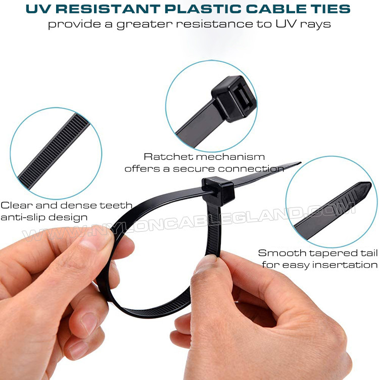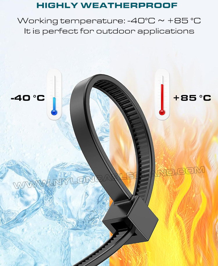 (2) 향상된 자외선 차단: UV 첨가제가 첨가된 프리미엄 블랙 폴리아미드 6.6(UL 94V-2) 소재로 제작되어 내후성, 단열성, 내구성이 뛰어나 -40°C ~ 85°C(40°F ~ 185°F)의 환경에서 사용할 수 있습니다.